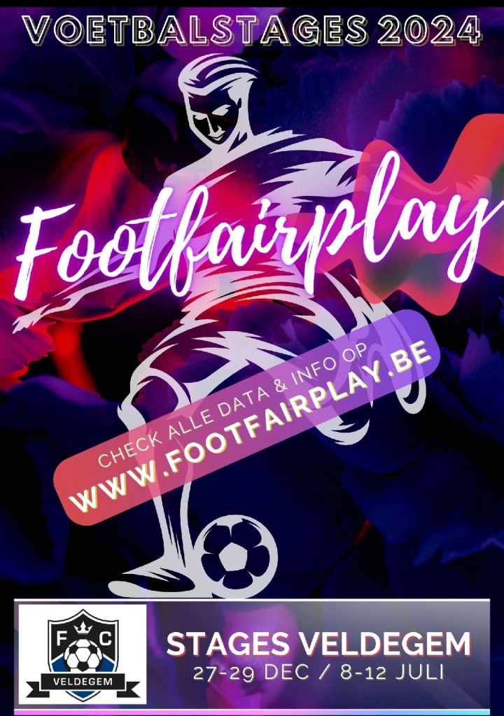 In de zomervakantie is er opnieuw een jeugdvoetbalkamp op de terreinen van FC Veldegem. Ons zomerkamp i.s.m. Footfairplay vindt plaats van maandag 8 juli t.e.m. vrijdag 12 juli 2024.